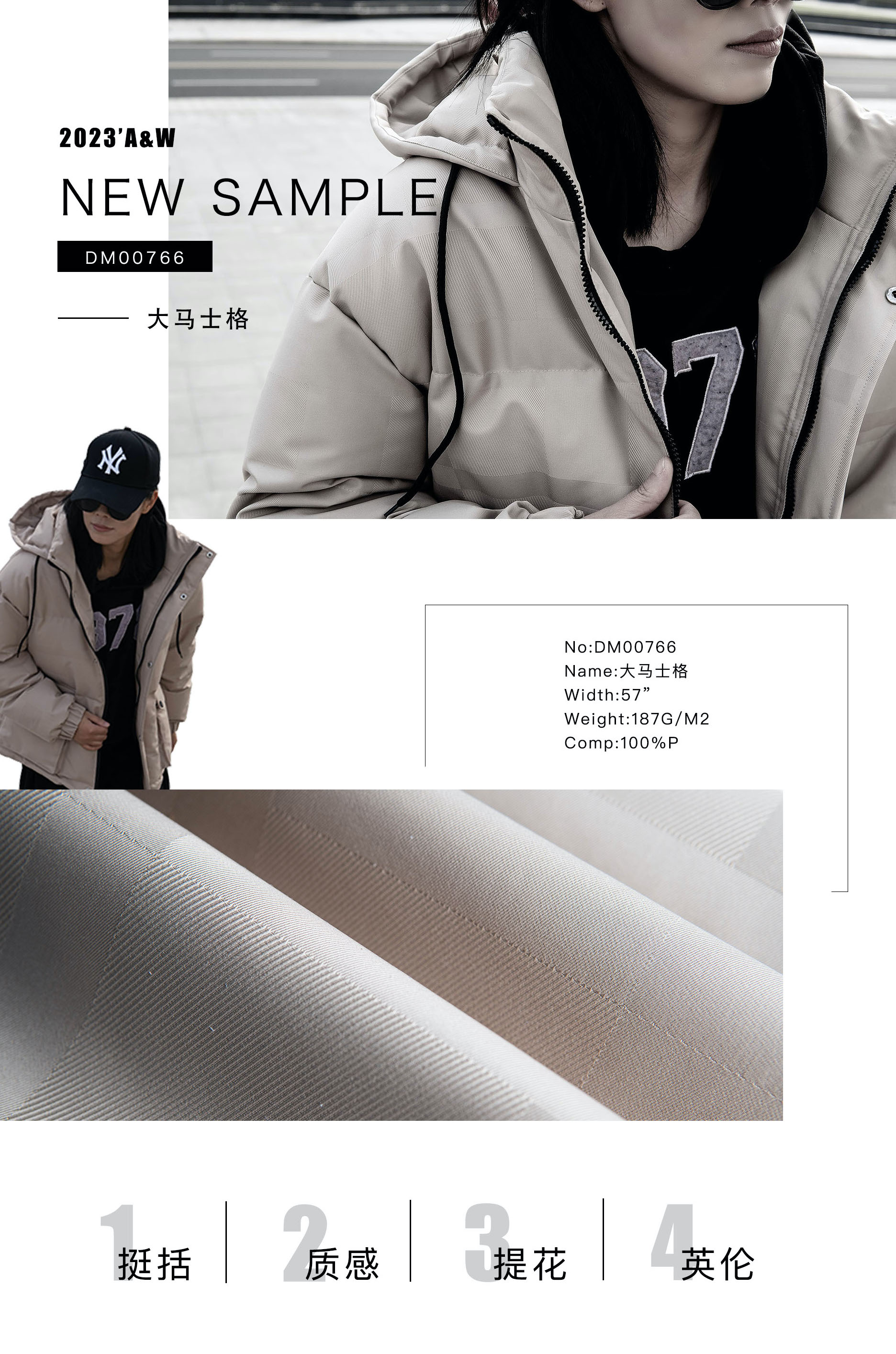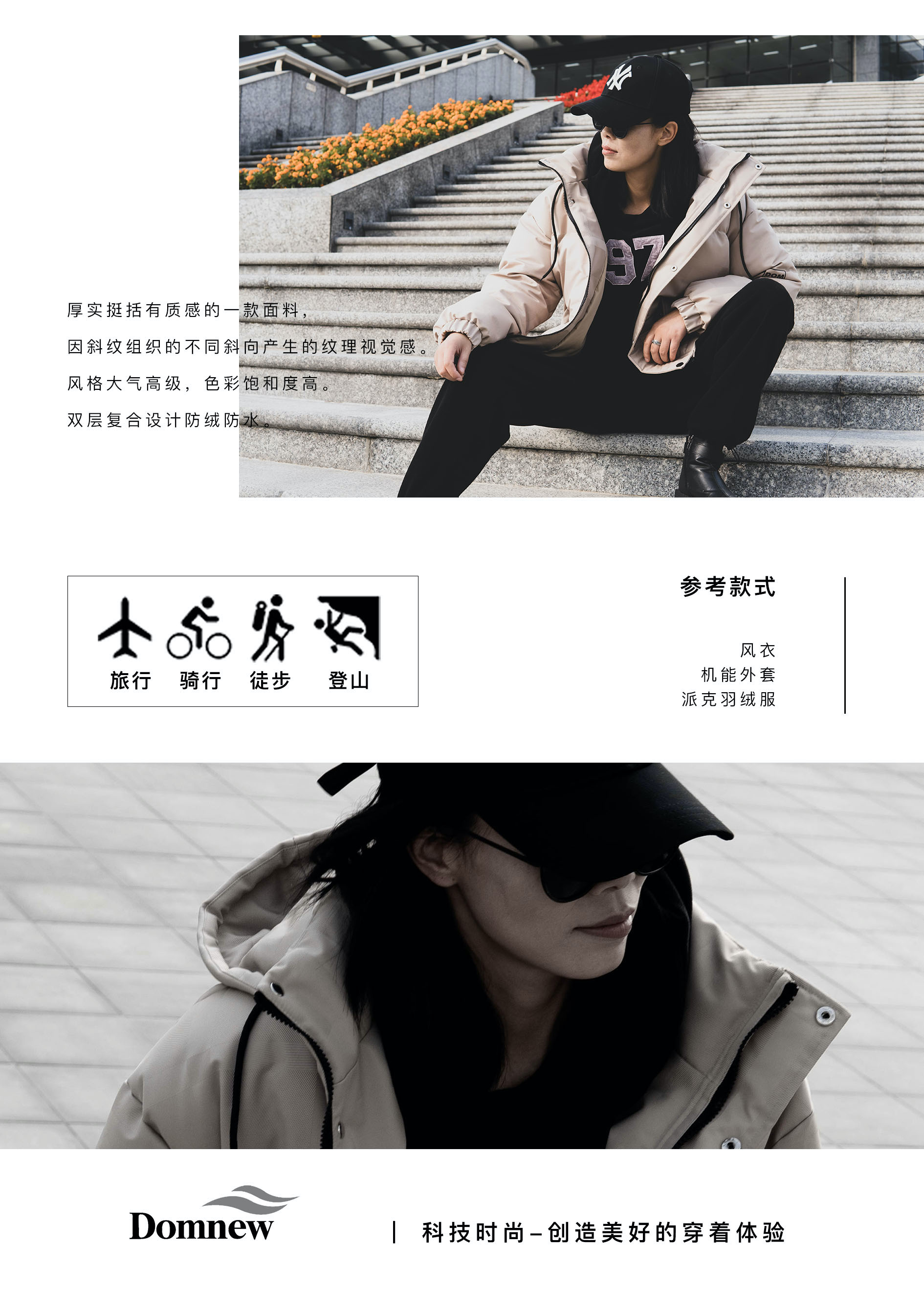零起订提花,方便快捷。棉感厚实,挺括有质感,因斜纹组织的不同斜向产生的纹理视觉感。风格大气高级,色彩饱和度高。双层复合设计防绒防水。